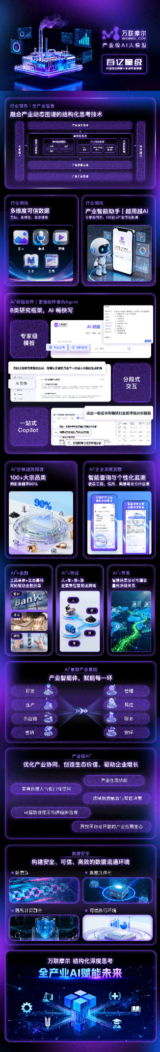 从政策导向的精准对接到技术壁垒的逐步突破,再到产业互联网的生态协同,万联摩尔作为产业AI大模型的代表,正以数据为基、智能为核、场景为果的发展逻辑,为中国经济数实融合注入数智动能,这不仅是“人工智能+”行动要义的实质落地,更是“人工智能+”赋能产业发展的重要价值。